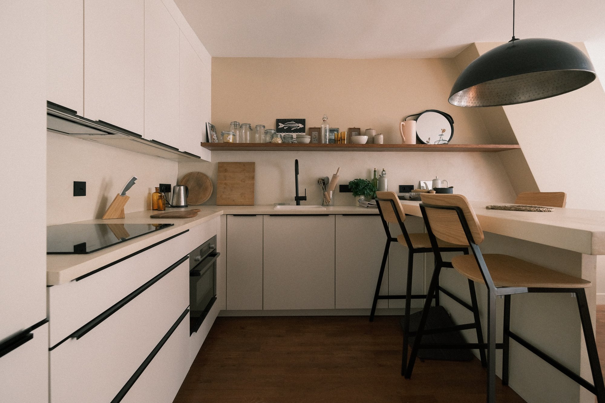 Pensé pour être à la fois fonctionnel et chaleureux, il allie des mobiliers sur mesure et des matières sobres aux couleurs douces.