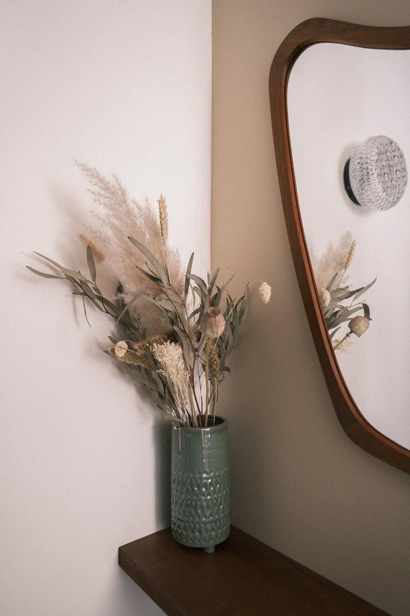 Le bois et le béton ciré sont les matières dominantes. Elles reflètent l’esprit du lieu : doux et chaleureux.