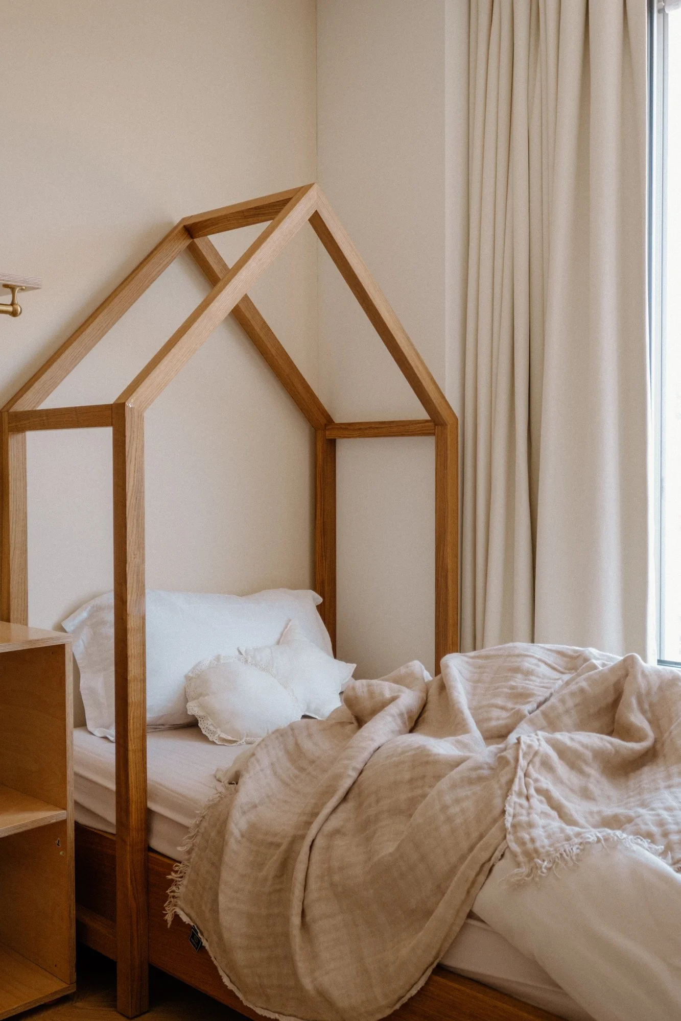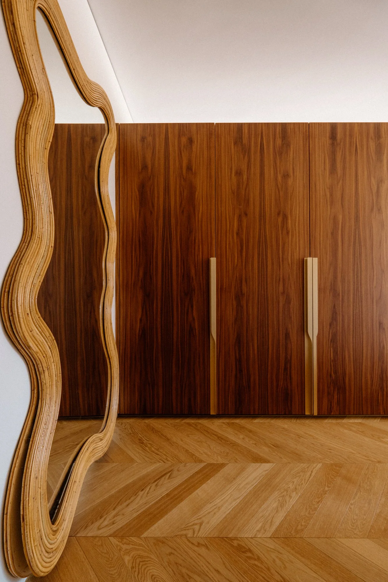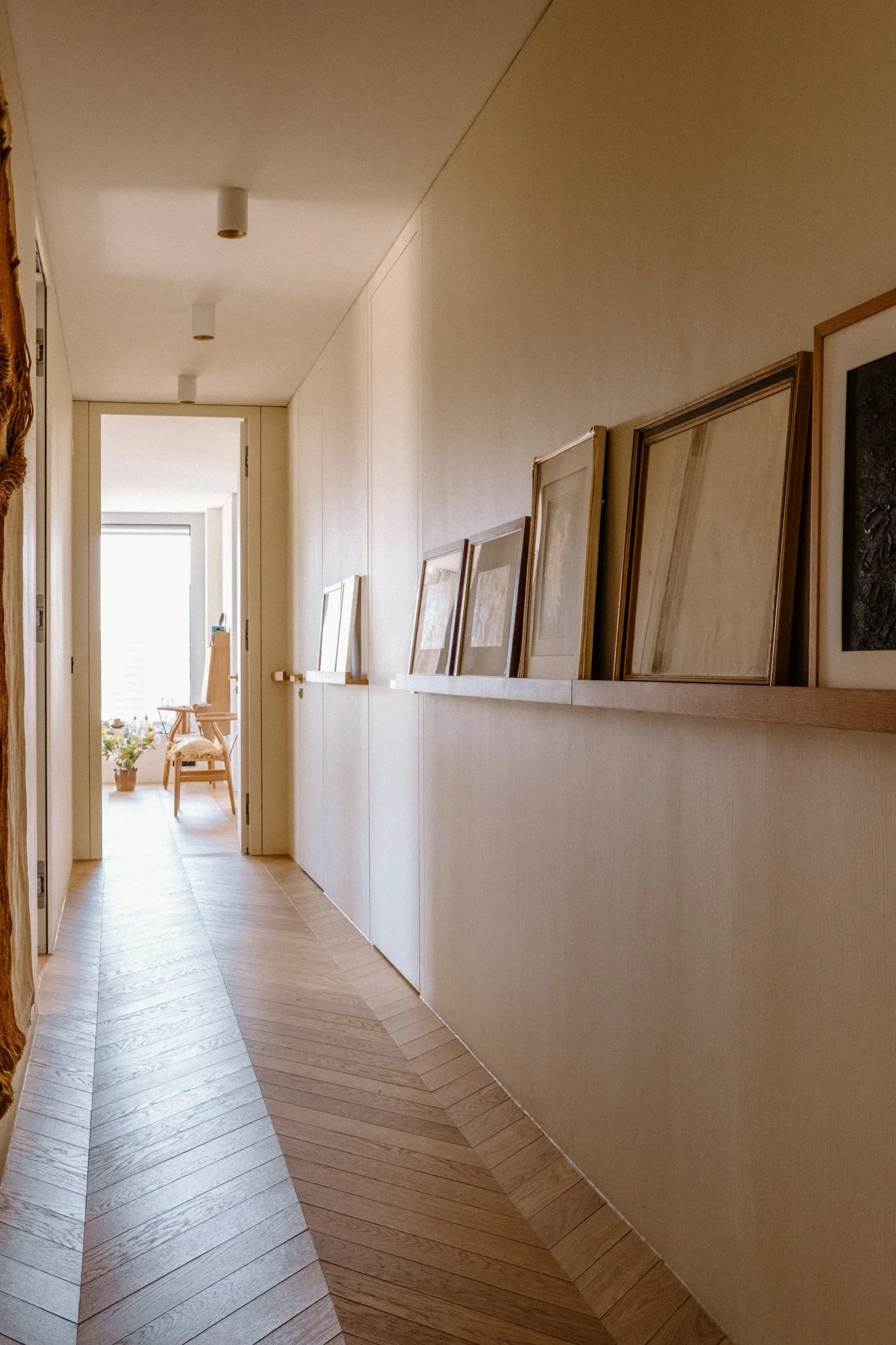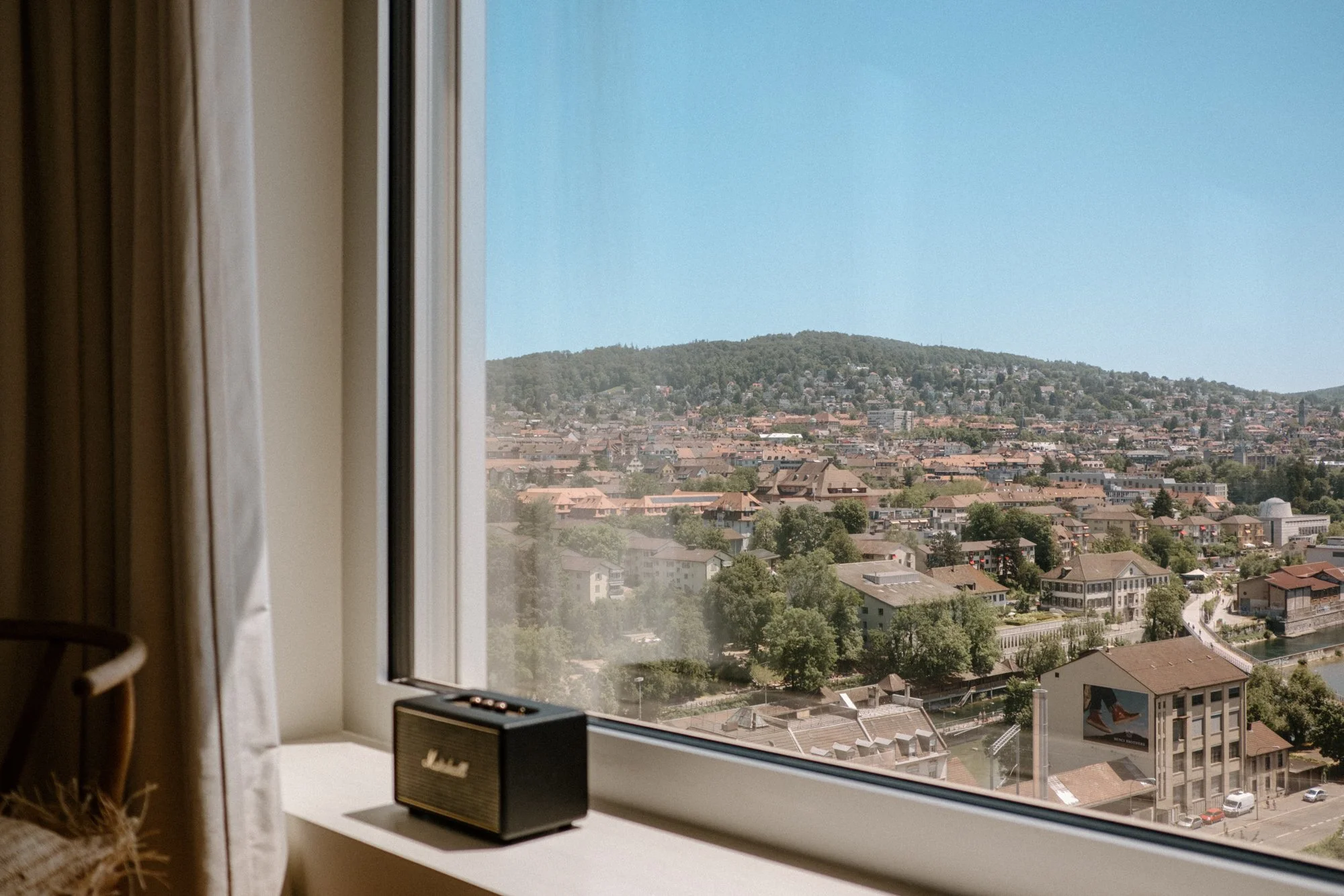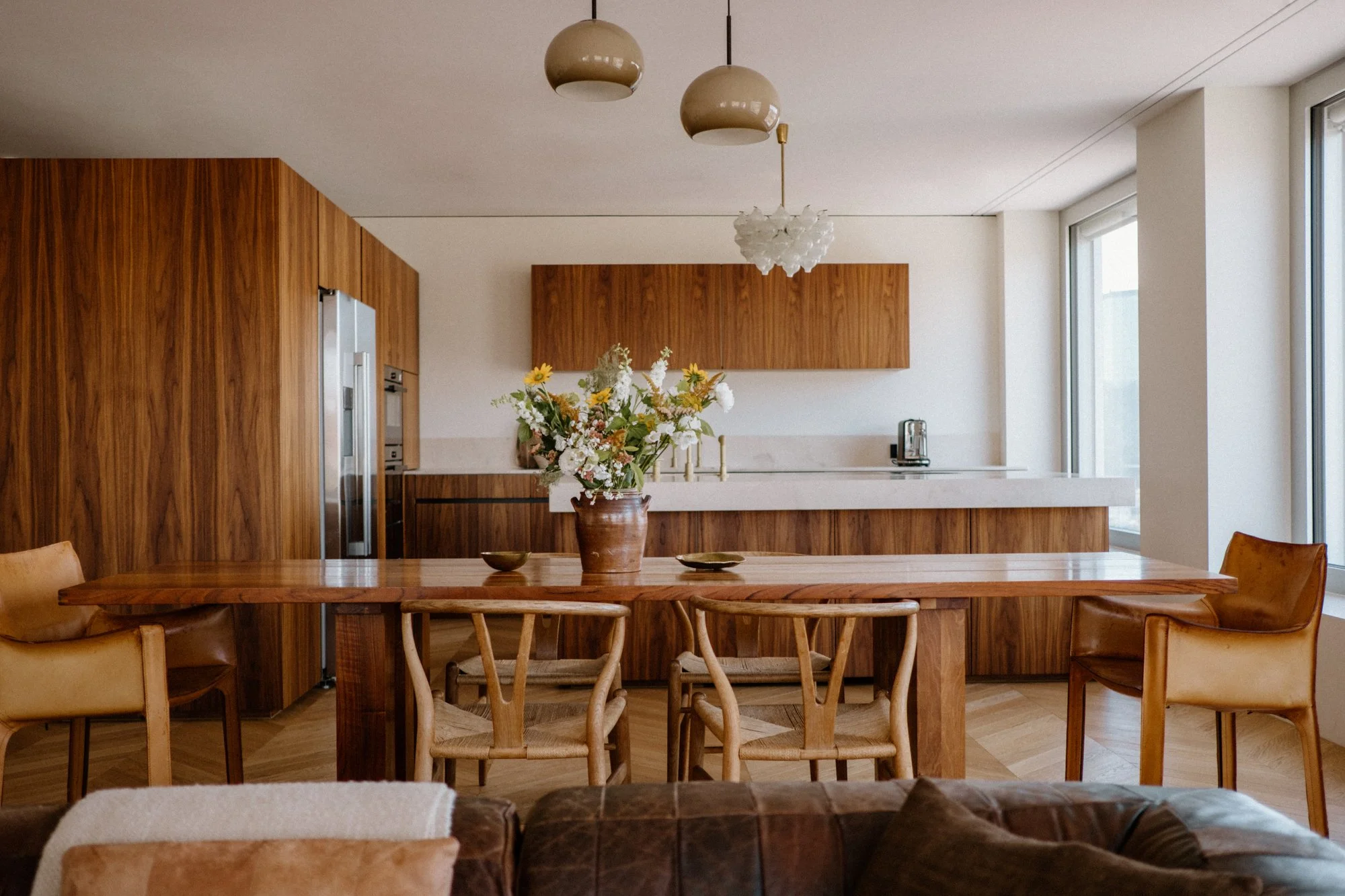 A la première visite, les espaces paraissent froids et austères. Notre mission est de créer une ambiance chaleureuse, tout en restant dans l’esprit épuré et dessiné de l’architecture suisse. Les matériaux choisis sont nobles et naturels. Beaucoup d’éléments sont dessinés sur mesure notamment la méridienne/coffre en marbre, la tête de lit et meuble vasque de la suite parentale.