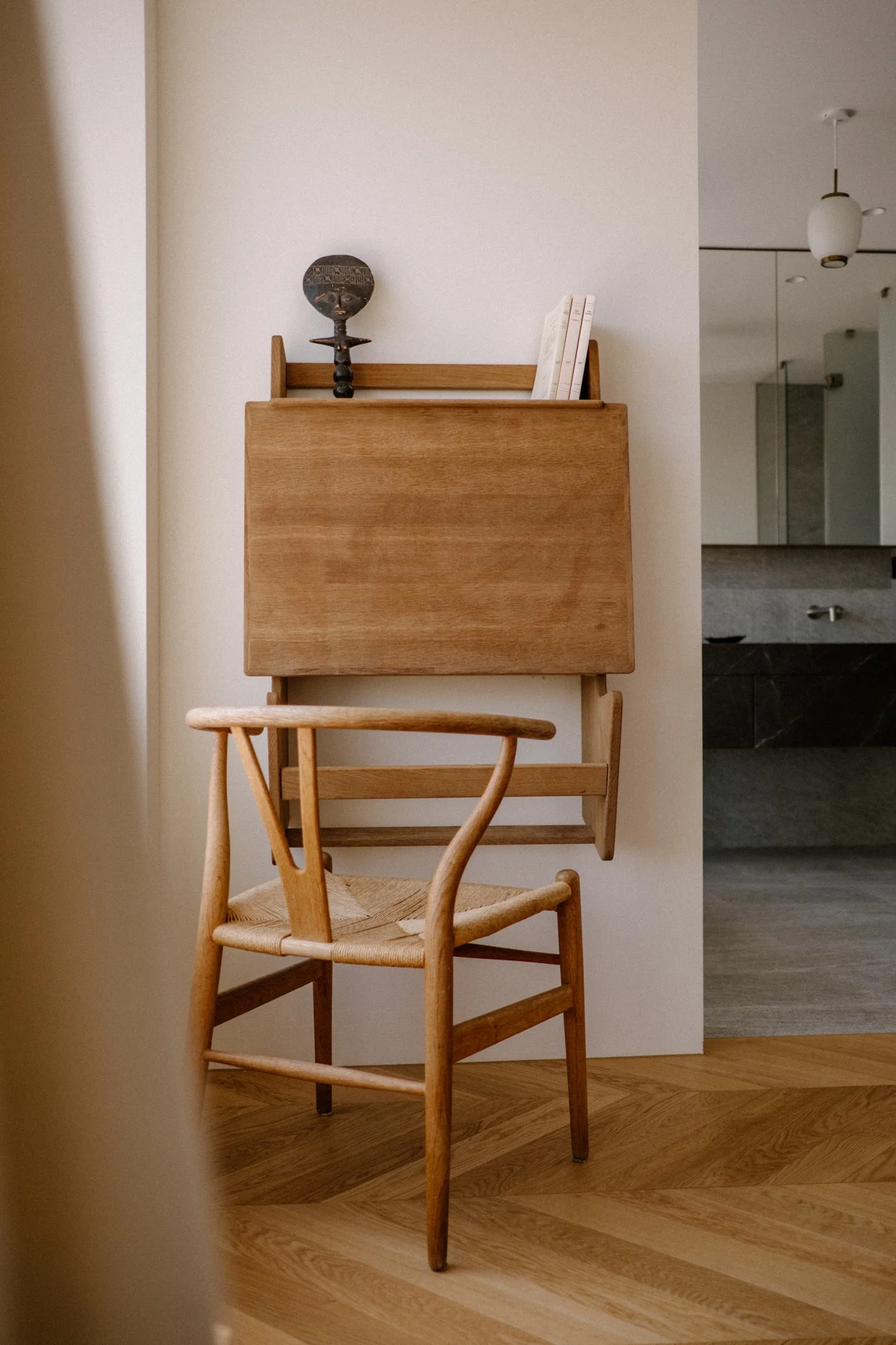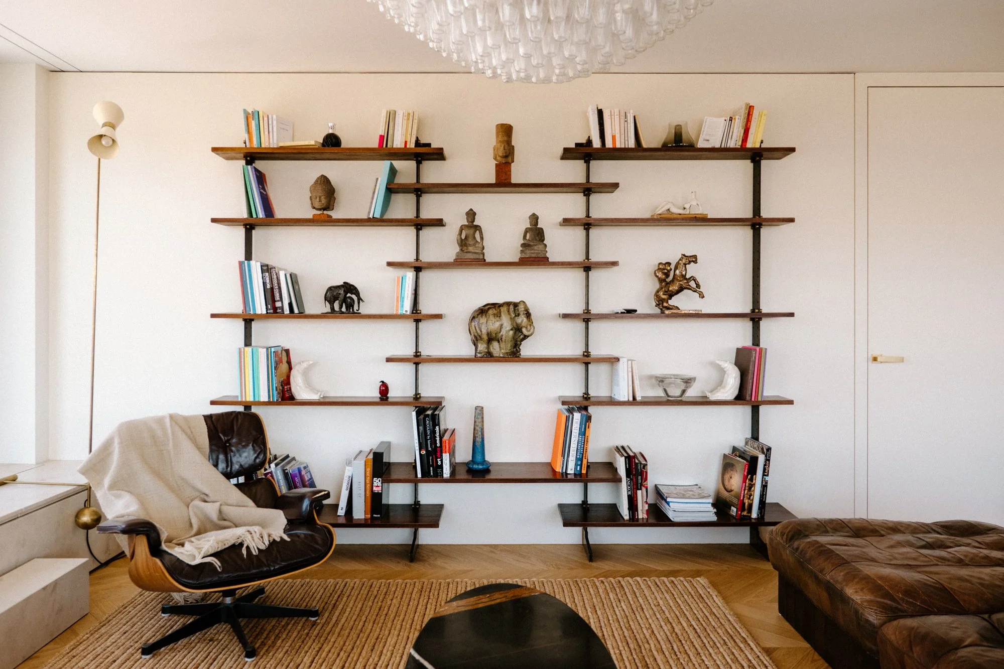 En complément de la collection du propriétaire, les mobiliers, luminaires et objets sont tous chinés chez des antiquaires et revendeurs d’art.