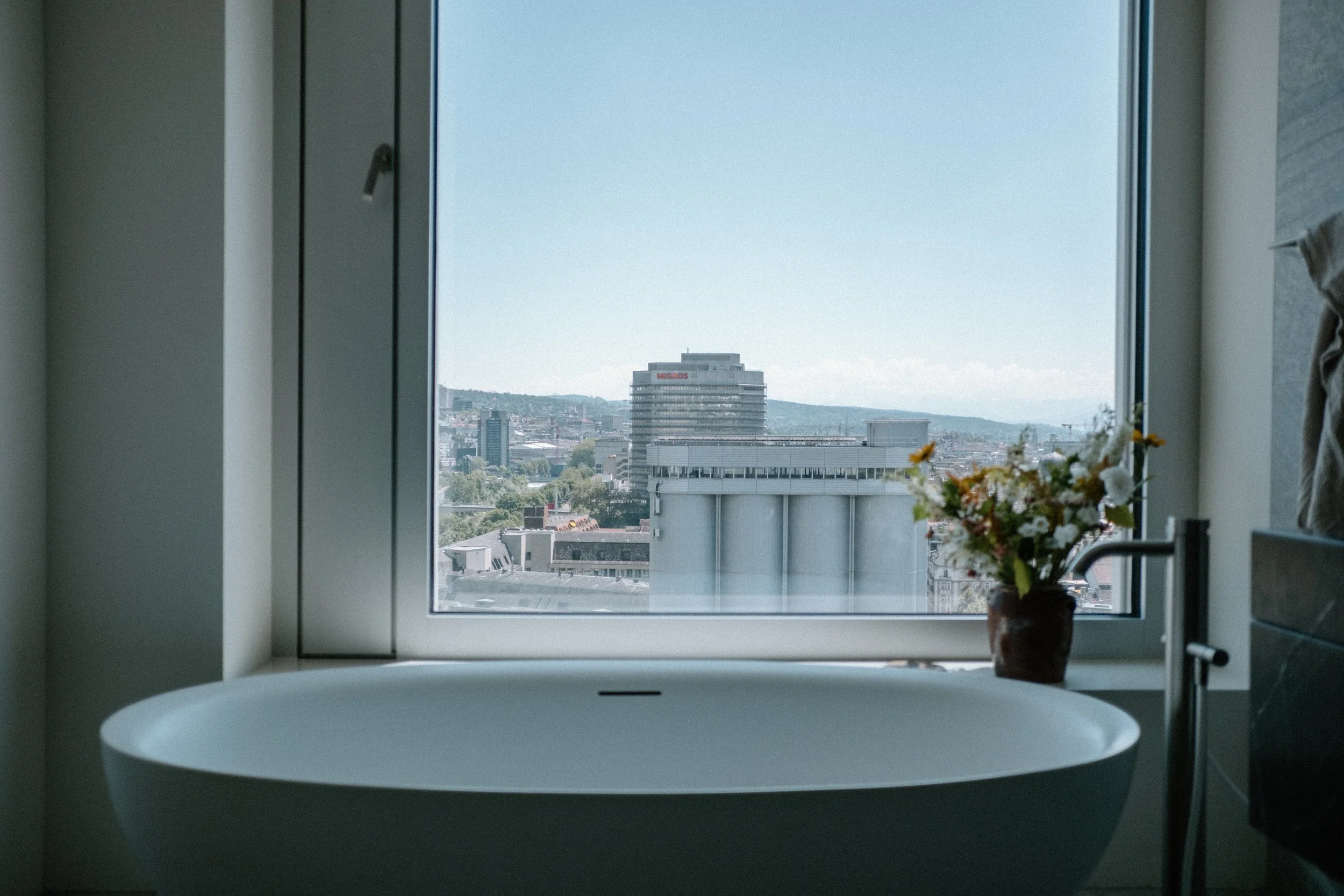 Situé dans une tour contemporaine, cet appartement offre une vue à 360° sur Zurich.
